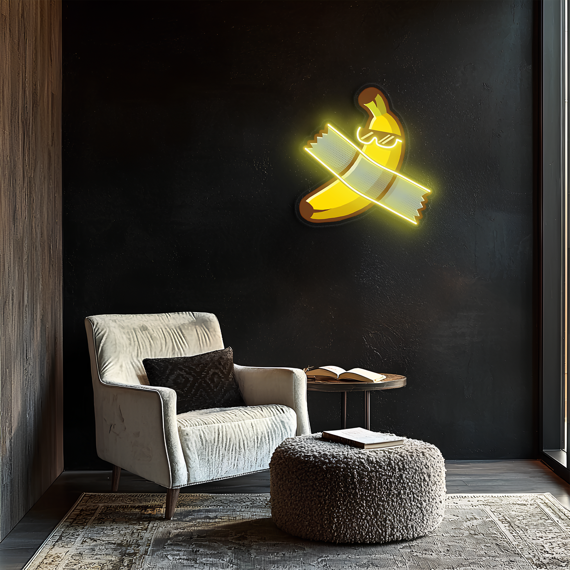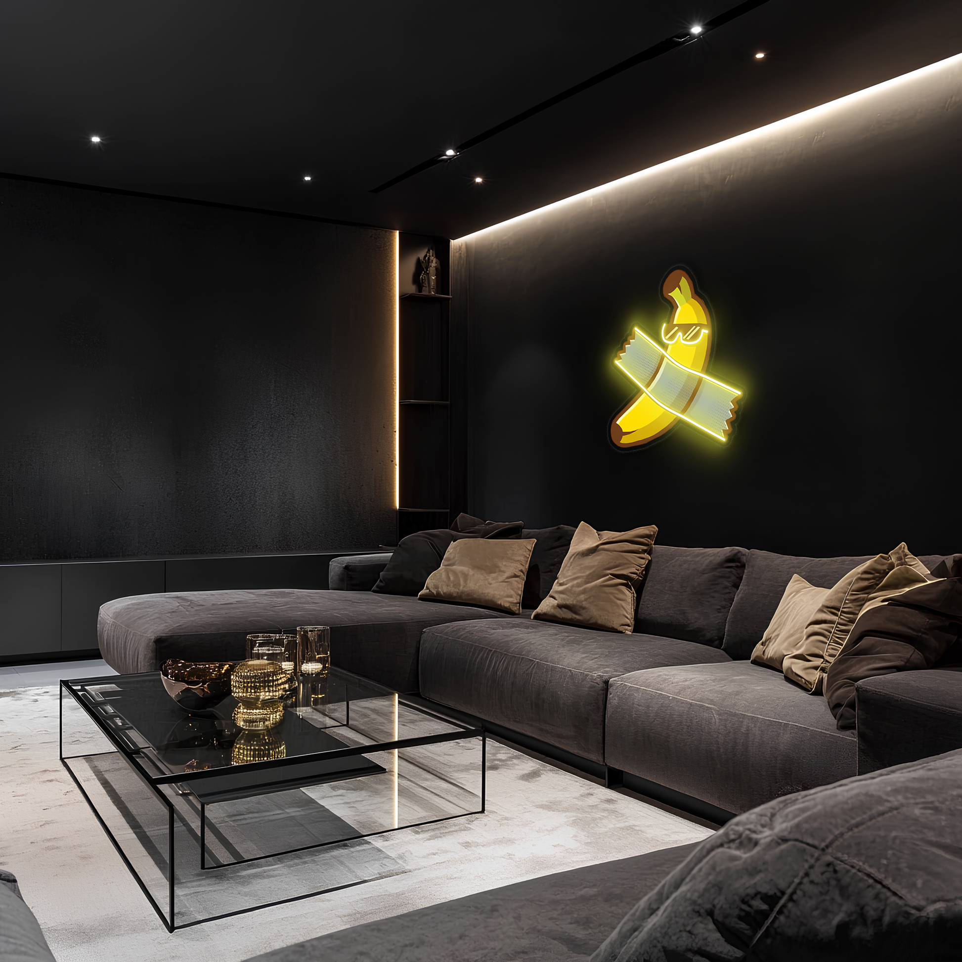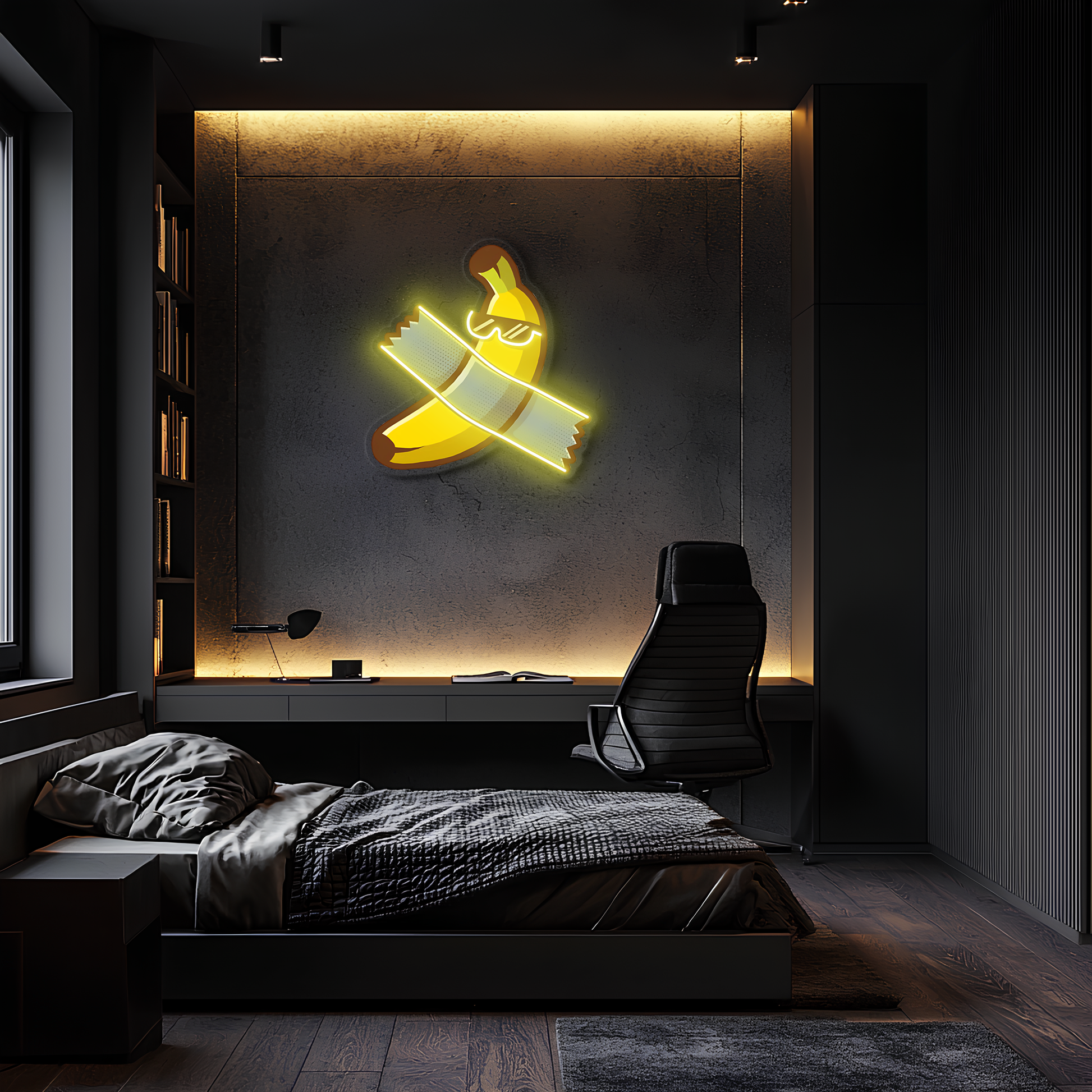 Pop art akımından ilham alınarak tasarlanan Bantlanmış Muz Neon Duvar Dekoru, mizahı ve modern tasarımı bir araya getiriyor.