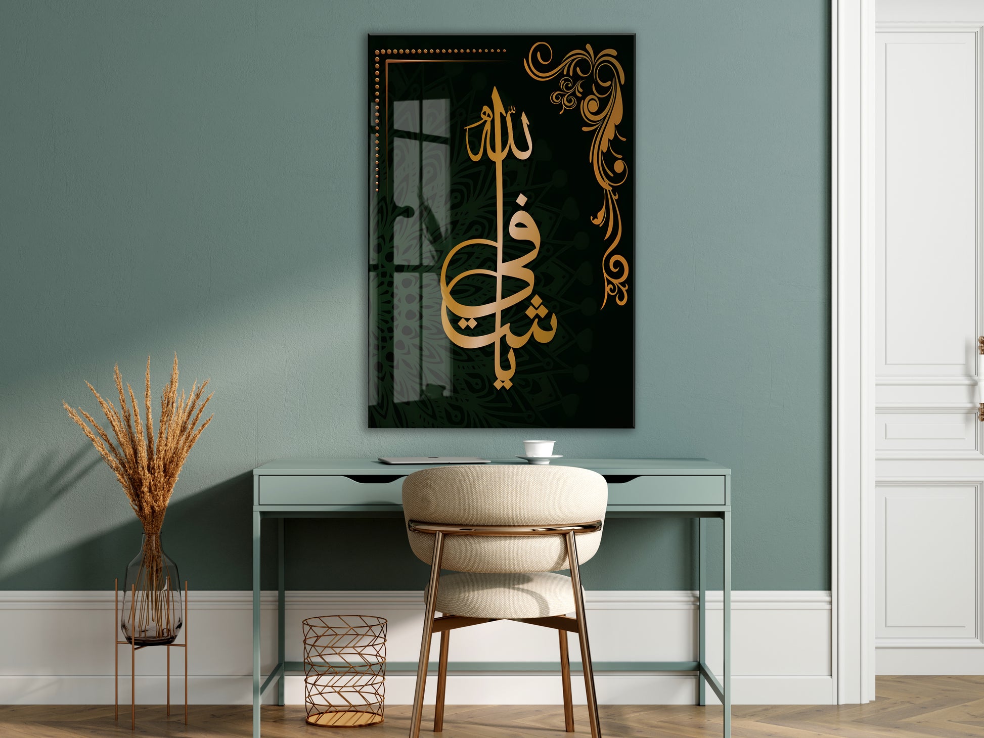Ya Şafi Yazılı Cam Tablo- PeonyDini013